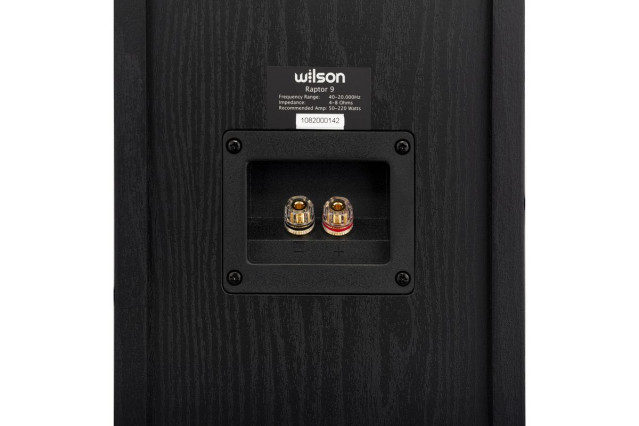 Front kolumn Wilson Raptor 9 został zamknięty panelem z połyskliwego tworzywa sztucznego w kolorach, odpowiednio, białym i czarnym. Tworzywo zapewnia długotrwałą odporność na zmianę koloru i niepożądany wpływ światła. Materiałowe maskownice w kolorze klasycznej czerni są mocowane na tradycyjne kołki montażowe.