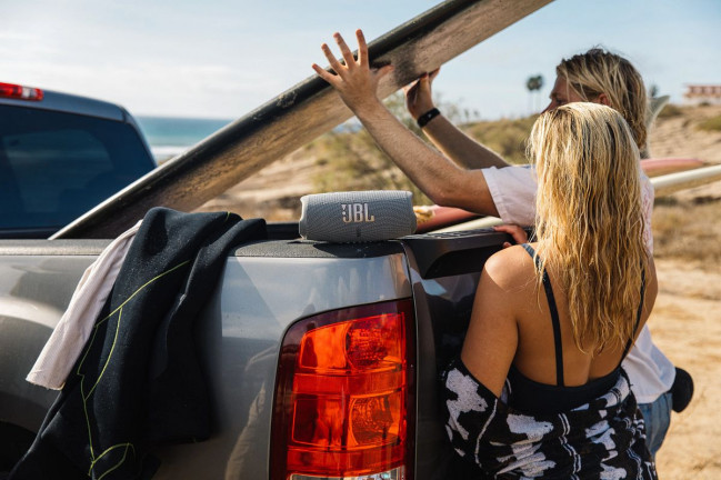 JBL Charge 5 jest wyposażony w funkcję PartyBoost, która pozwala połączyć wiele głośników obsługujących tę technologię. Bezprzewodowe przesyłanie strumieniowe przez Bluetooth umożliwia ponadto bezprzewodowe sparowanie z głośnikiem nawet dwóch smartfonów lub tabletów i odtwarzanie muzyki z nich na zmianę.