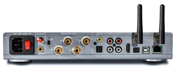 • Dwa ustawienia wyjściowe (4 Ω i 8 Ω) umożliwiają dopasowanie wzmacniacza do głośników o wyższej lub niższej impedancji