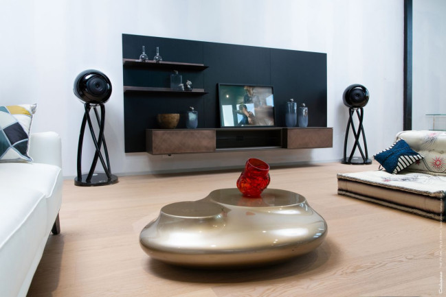 Przy wszystkich swoich osiągach kolumny są kompaktowe - ich wysokość to niecałe 130 cm, kula i podstawa mają średnicę 48 cm. Elektronikę ukryto w podstawie.