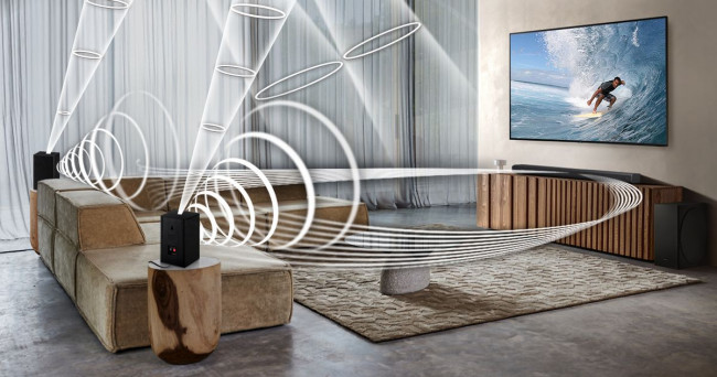 W połączeniu z telewizorami Samsung Neo QLED i QLED soundbary Q-Serii brzmią - jak mówi producent - wyjątkowo, zaś wspomniany model Samsung Q950A przyczynia się do - poniekąd - rewolucji. Jako pierwszy soundbar na świecie oferuje bowiem dźwięk przestrzenny w formacie 11.1.4.