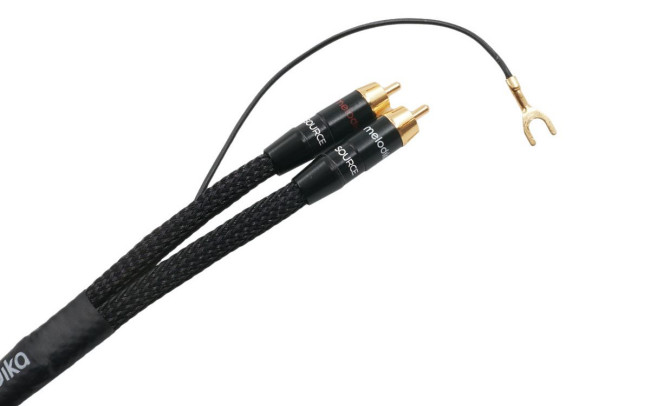 Melodika MDPHD to interkonekt z wtykami 2x RCA - 2x RCA przeznaczony do przesyłania sygnału analogowego z gramofonu do przedwzmacniacza, z dodatkową żyłą uziemiającą.
