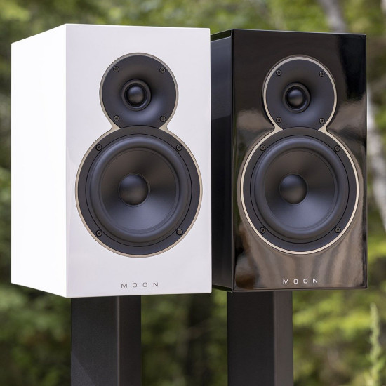 MOON Voice 22 można umieścić na dowolnej, stabilnej powierzchni wykorzystując ich zintegrowaną podstawę Hover Base, bądź ustawić je na dedykowanych podstawkach. Te wykonano z malowanej proszkowo stali i wykończono czarnym matem.