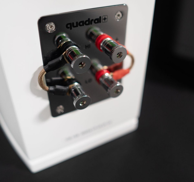 Elegancka smukła obudowa, dzięki zaokrąglonym bokom o grubych ściankach, redukuje podbarwienia negatywnie wpływające na jakość reprodukcji. Na tylnej ściance odnajdziemy wysokiej klasy złącza głośnikowe.