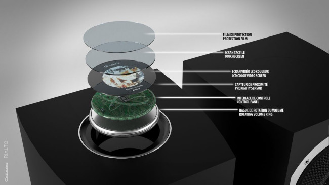 Kolorowy ekran wideo LCD wyświetla również okładki odtwarzanych albumów. Jak to jest standardem w przypadku systemów podłączonych do Cabasse, aktualizacje oprogramowania pozwolą na ewolucję interfejsu ekranu.