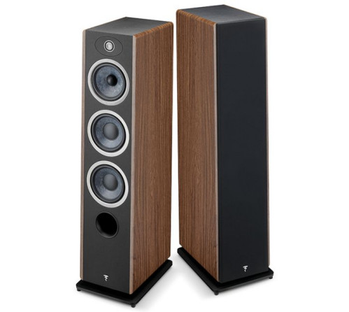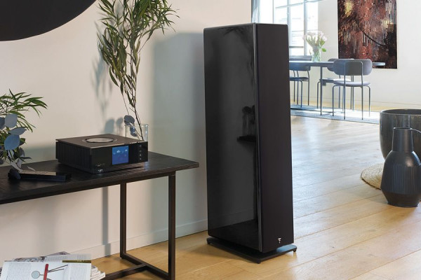 Focal jak zwykle zabawia nas materiałami i kolorami. Przednie panele (efekt "skóry") zestawiono z trzema wariantami ścianek bocznych – z imitacją drewna (Dark i Light Wood) lub czarnym na wysoki połysk.