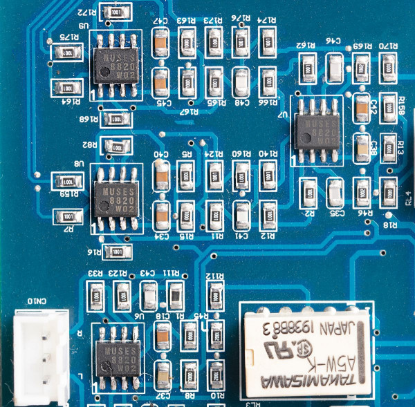 32-bitowy przetwornik cyfrowo-analogowy Dual ESS Technology ESS9038Q2Mniezależnie dekoduje lewy i prawy kanał, poprawiając separację kanałów i redukując ogólne zakłócenia. Wysokiej klasy rezystory foliowe MELF firmy Vishay Zapewnia to jakość dźwięku z dekodowaniem PCM do 384kHz, a DSD do DSD256.