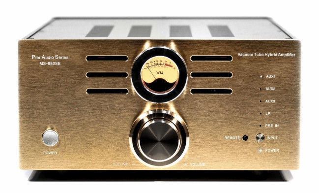 Pier Audio MS-880 SE jest dostępny z czarną lub złotą płytą czołową. To samo dotyczy pilota zdalnego sterowania.