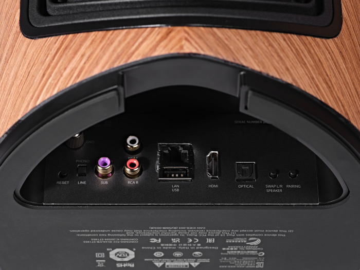 System zawiera również dwa wzmacniacze - jeden klasy AB o mocy 100 W, który obsługuje przetwornik wysokotonowy oraz wzmacniacz klasy D o mocy 205 W, który dostarcza moc potrzebną przetwornikowi średnio-niskotonowemu do reprodukcji głębokiego i mocnego basu.