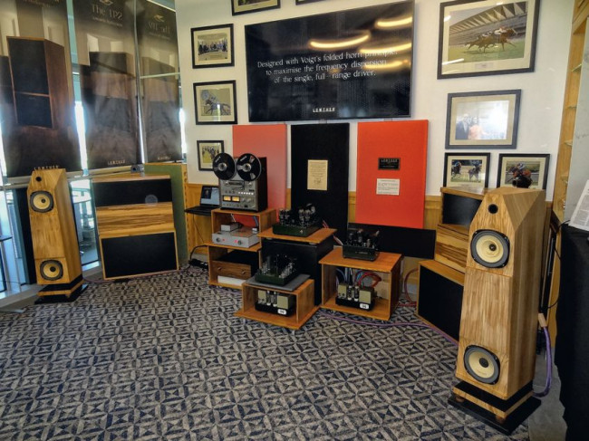 Kolumny firmy Lowther z przetwornikami szerokopasmowymi… Ale nie tylko – akurat ten model jest trójdrożny, ma więc dodatkowo niskotonowy i wysokotonowy. Jednodrożne, dwudrożne, trójdrożne… w każdym wypadku o wysokiej efektywności, a to zachęca do podłączenia wzmacniaczy lampowych. "Kropkę nad i" stylowej tradycji stawia magnetofon w roli źródła, o klimat dba też wystrój pomieszczenia.