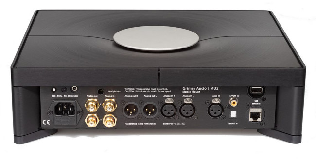 Grimm Audio MU2 ma 2 stereofoniczne wejścia analogowe, 3 stereofoniczne wejścia cyfrowe, wyjścia XLR i RCA oraz gniazdo słuchawkowe.