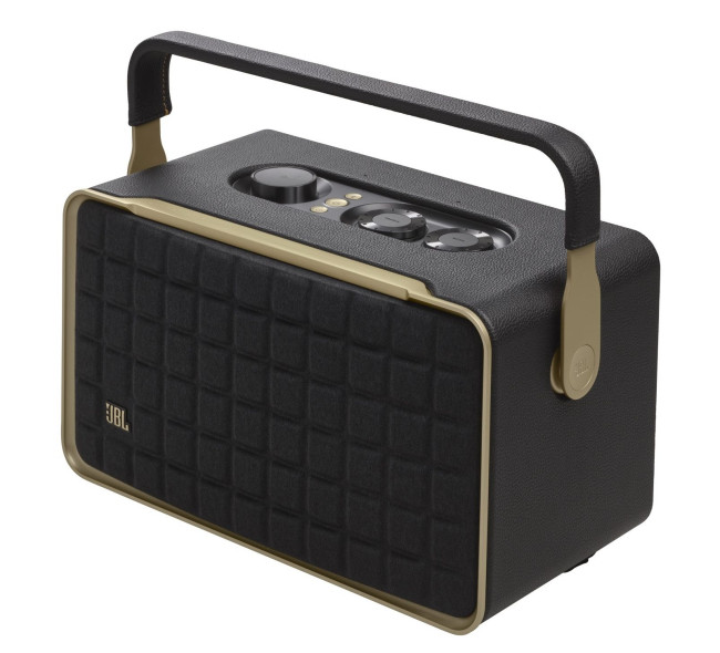 JBL Authentics 300 to głośnik dla tych, którzy lubią styl retro - jego wzornictwo jest inspirowane stylem z lat 70. Głośnik ma skóropodobną obudowę i otrzymał kultową maskownicę Quadrex. Aluminiowy uchwyt pomaga w transportowaniu go z miejsca na miejsce.