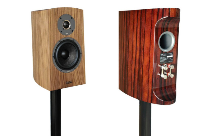 Cała obudowa (z logo marki umieszczonym na przedniej ściance) jest lekko odchylona do tyłu, aby zapewnić wyrównanie czasowe dla wszystkich przetworników - dzięki temu przetwornik wysokotonowy jest cały czas ustawiony w najlepszej pozycji. Maskownica jest montowana magnetycznie.