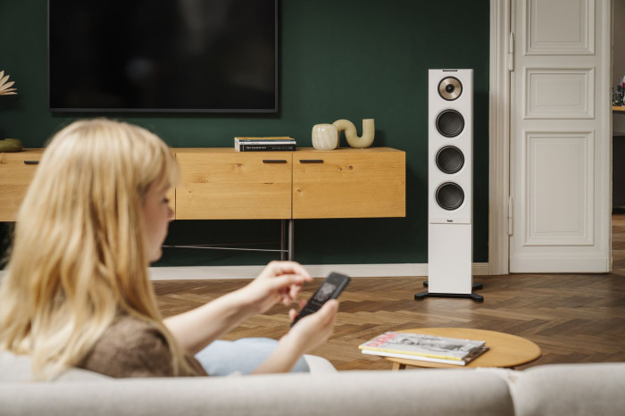 Jedną z opcji aplikacji Teufel Home jest możliwość konfiguracji, która kolumna jest prawa, a która lewa. Dzięki temu głośnik z panelem sterującym można dogodnie umiejscowić.