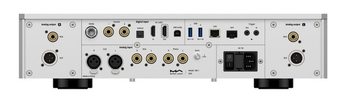 Streamer może stać się centrum domowego systemu audio, ponieważ jest wyposażony w analogową, bazującą na drabince rezystorowej, regulację głośności. Może też funkcjonować jako przedwzmacniacz – oferując nam jedno wejście XLR, jedno RCA oraz dedykowane wejście dla gramofonu. To ostatnie wejście wspiera zarówno wkładki MM, jak i także MC.