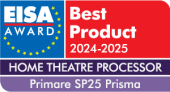 Procesor SP25 Prisma, idealny partner dla wielokanałowego wzmacniacza mocy A35.8, nagrodzonego już przez EISA, obsługuje systemy aż do formatu 11.2. Wspomagany przez korekcję akustyki pomieszczenia Dirac Live poniżej 500 Hz (w razie potrzeby z możliwością rozszerzenia do pełnego pasma), tworzy przekonujące pejzaże dźwiękowe Dolby Atmos i DTS:X z płynnymi wysokimi tonami, naturalną reprodukcją dialogów, precyzyjnym rozmieszczeniem efektów i głębokim, uderzającym basem. Funkcje służące muzyce obejmują platformę streamingową/radiową Primare Prisma i wejście USB DAC. Sterowanie za pomocą aplikacji, rozbudowana konfiguracja głośników i wejść dopełniają wszechstronności luksusowego urządzenia Primare.