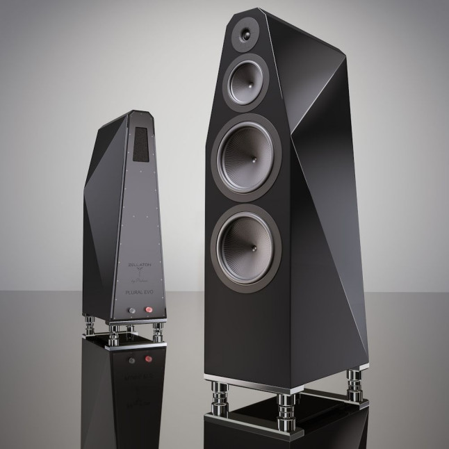 8. Kolumny głośnikowe Zellaton Plural Evo, wykorzystujące najnowsze membrany Zellatona, których opracowanie zajęło ponad 5 lat. Będą prezentowane ze szwajcarska elektroniką firmy Goldmund - wzmacniaczem mocy Telos 800, przedwzmacniaczem Mimesis Exellent oraz odtwarzaczem Eidos SACD.