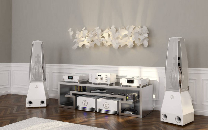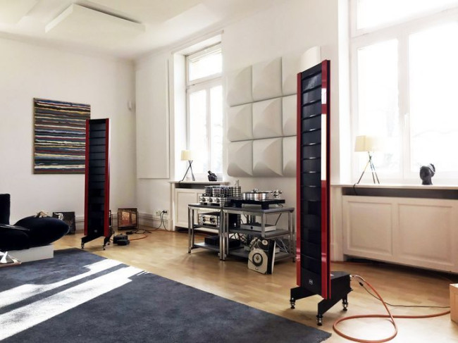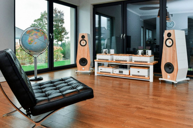 24. Po raz pierwszy w Polsce - ponaddwumetrowe kolumny głośnikowe LaGRANDE włoskiego producenta Fonica specjalizującego się w w produkcji kolumn planarnych (magnetostatycznych). Kolumny mają osobne panele do odtwarzania niskich, średnich i wysokich częstotliwości, zasilane aktywnie przez wbudowane wzmacniacze N-Core oraz aktywną zwrotnicę zbudowaną w oparciu o okłady DSP.