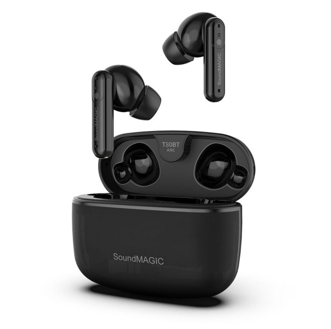 SoundMagic T80BT to słuchawki wyposażone w specjalnie dla nich zaprojektowane przetworniki dynamiczne o średnicy 13 mm. Także i tutaj mamy zaawansowaną redukcję szumów, która łączy zalety systemu aktywnego (ANC) z naturalnymi właściwościami słuchawek dokanałowych. Dzięki temu oferują tłumienie zewnętrznych hałasów na poziomie -36 dB. Także ten model pozwala na przełączanie się pomiędzy trybami działania systemu ANC, co pozwala przykładowo usłyszeć wyraźnie otoczenie bez konieczności wyciągania słuchawek z uszu.