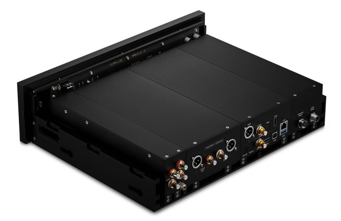 Auralic AQUILA X3 posiada także wbudowany transport dla płyt CD z wysokiej jakości mechanizmem odczytującym płyty. Użytkownicy mogą ponadto dobrać potrzebną funkcjonalność urządzenia poprzez dodatkowe moduły, wybierając pomiędzy cyfrowymi oraz analogowymi konfiguracjami lub możliwością zastosowania obu.