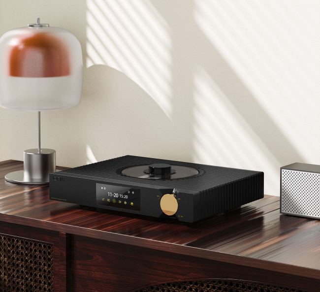 Zenith XST20 jest transportem typu top-loader, który wyróżnia się elegancką, czarną obudową z odpornego stopu aluminium ze złotym pokrętłem i 3,4-calowym ekranem ułatwiającym obsługę. To tradycyjne rozwiązanie, którego jedynym zadaniem ma być jak najlepsze odtwarzanie płyt SACD i CD. Nie ma więc funkcji łączności bezprzewodowej czy streamingu.