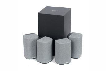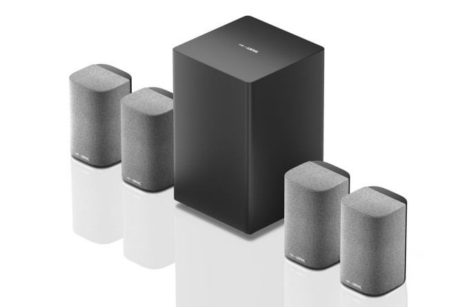 Loewe We. BOOST to system kina domowego w standardzie 4.1.2 oferujący obsługę Dolby Atmos, Dolby Digital i PCM. Wszystkie wspomniane elementy zestawu komunikują się ze sobą bezprzewodowo, a łatwe połączenie systemu do telewizora umożliwia dołączony dongle HDMI eARC. Każdy głośnik satelitarny wyposażono w trzy przetworniki. Dwa z nich są skierowane do przodu, a jeden – do góry. Łączna moc muzyczna zestawu wynosi aż 720 watów, co pozwala wypełnić brzmieniem nawet duże pomieszczenia.