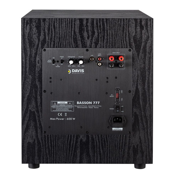 Subwoofer oferuje moc 600 W (maksymalnie, w klasie D) i jest wyposażony w szeroki zakres regulacji: częstotliwość odcięcia, poziom głośności oraz fazę. Davis Acoustics zdecydowało się na umieszczenie przetwornika oraz portu bas-refleks z przodu, co zapewnia równomierne rozchodzenie się niskich częstotliwości w pomieszczeniu i minimalizuje wpływ ustawienia subwoofera na brzmienie.