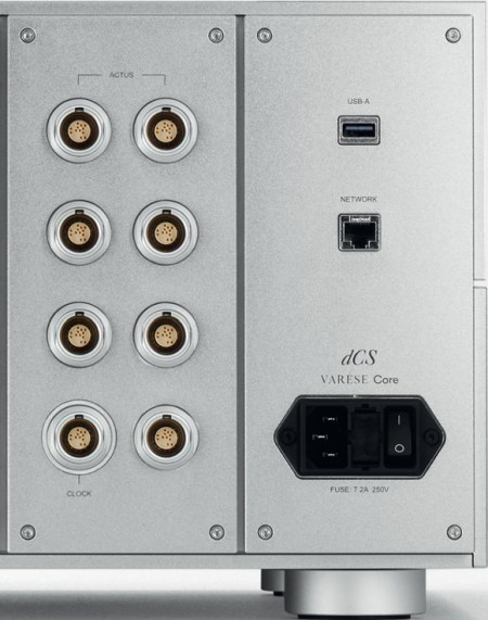 W wariancie podstawowym rdzeń ma jedno wejście USB (dla nośników pamięci) oraz złącze sieciowe LAN. Trzy masywne zaślepki w lewej części tylnego panelu to maskownice dla slotów kart rozszerzeń; dCS zapowiedział już pierwszy taki moduł, który dodaje wejścia cyfrowe (AES/EBU oraz USB-B w formule USB-DAC).