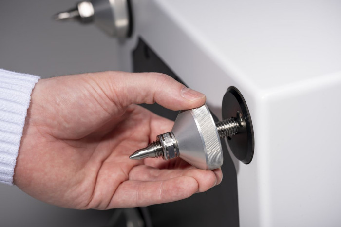 Inspirując się konstrukcją nóżek Acoustic Diode zdecydowano, by w nowej Sabrinie V umieścić go w dolnej części obudowy – dokładnie w miejscu, gdzie kolce łączą się z podstawą. To specjalne rozwiązanie izolacyjne, określane jako V-MCD, w połączeniu z udoskonaloną kontrolą wibracji zapewnia jeszcze cichsze tło akustyczne.