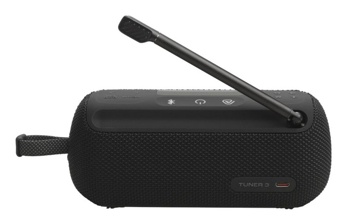 Radio jest wodoodporne i pyłoszczelne (IP67), a pasek umożliwia jego wygodne przenoszenie. Czas pracy wynosi 12 godzin na jednym ładowaniu oraz 3 dodatkowe godziny dzięki funkcji Playtime Boost.