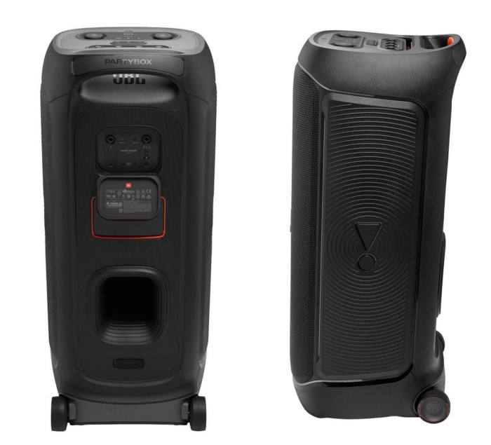 JBL PartyBox 720 ma wygodny uchwyt, szerokie kółka i odporną na zachlapania obudowę, więc śmiało można go odpalić nawet na basenie (głośnik otrzymał certyfikat IPX4). I to na długo, ponieważ z zestawem akumulatorów JBL Battery 600 Duo (do kupienia oddzielnie) będzie grał bez zasilania z sieci nawet 15 godzin.