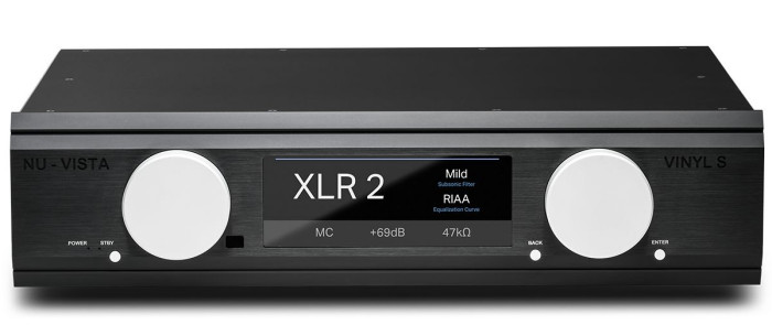 Każde z wejść RCA/XLR można osobno skonfigurować jako MM lub MC, z szerokim zakresem gain oraz przełączanym obciążeniem (pojemność/impedancja). Ustawienia zapamiętywane są per wejście. To pozwala perfekcyjnie dopasować Nu-Vista Vinyl S do praktycznie każdej wkładki.
