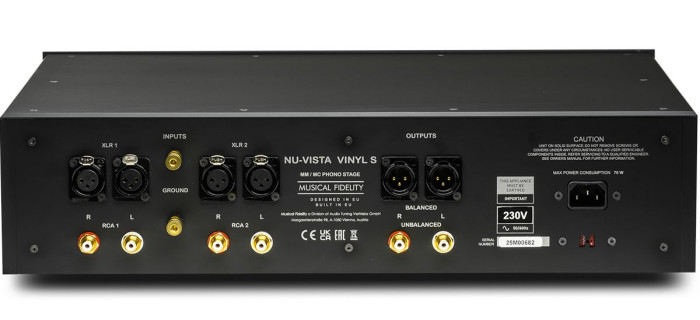 Musical Fidelity Nu-Vista Vinyl - specyfikacja techniczna