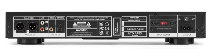 Kompaktowy odtwarzacz CD ACD APEX uzupełnia tę serię, oferując analogowe wyjścia lampowe w konfiguracjach RCA i XLR. Połączenie ACD APEX z dowolnym wzmacniaczem APEX.