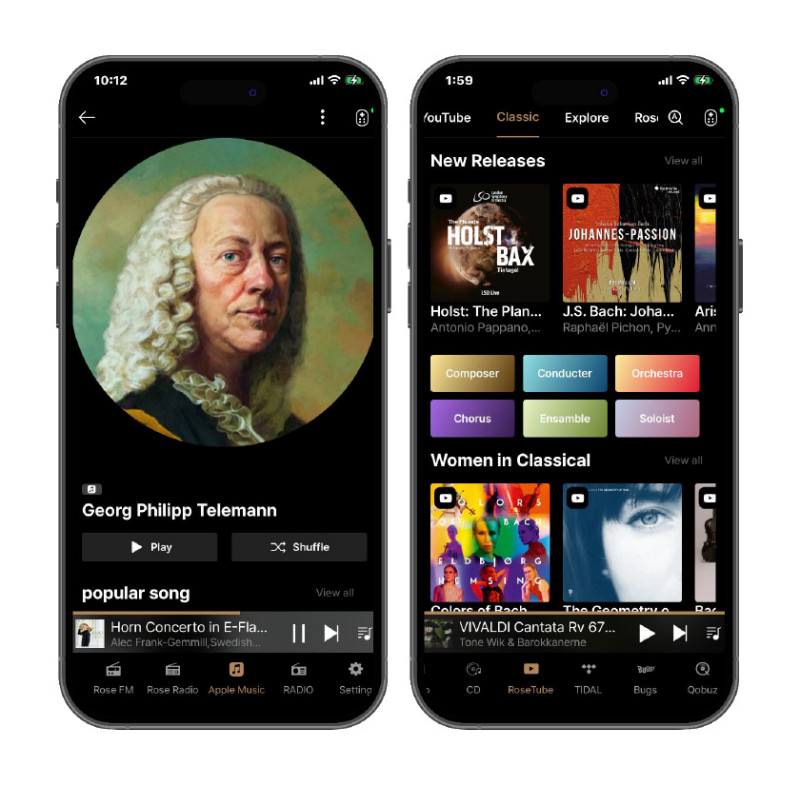 ROSE ONE rozwija także sposób obsługi muzyki klasycznej, która w tradycyjnych aplikacjach często jest trudna do uporządkowania. Wprowadzone rozwiązania umożliwiają bardziej precyzyjne przeglądanie repertuaru – według kompozytorów, dzieł czy konkretnych wykonań.