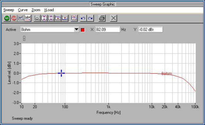 Pasmo przenoszenia (rys. 1) ukazuje niecały decybel spadku przy 10 Hz i niecałe dwa przy 100 kHz - tu jest więc dobrze.