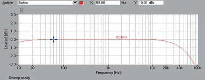Pasmo przenoszenia (rys.1) rozpoczyna się świetną liniowością przy 10 Hz (-0,3 dB), poziom zaczyna jednak spadać powyżej 15 kHz, mimo to -3 dB udaje się obronić dla wysokich 82 kHz.