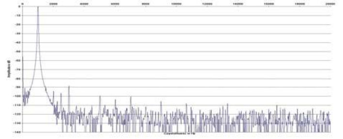 W spektrum harmonicznych (rys.1) daje się zauważyć praktycznie tylko trzecia, której poziom to niskie -88 dB.