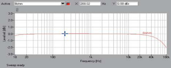 Akurat w tym przypadku nie będzie to miało kluczowego znaczenia (dopóki nie zdecydujemy się podłączać źródeł analogowych), ale czułość Denon AVR-2310 ustalono na wzorcowym poziomie 0,19 V. Szumy nie leżą bardzo nisko, S/N wynosi 80 dB, dynamika przekracza wprawdzie 100 dB, chociaż jest to głównie zasługa wysokiej mocy wyjściowej. W pasmie przenoszenia (rys.1) można dostrzec spadki na skrajach, jednak -0,3 dB przy 10 Hz oraz -2 dB przy 100 kHz wciąż bardzo dobrze świadczy o konstrukcji.