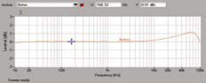 Czułość wejść analogowych jest niska, wynosi 0,38 V, jednak wobec wejść HDMI nie ma to większego znaczenia. Impulsowe końcówki to z jednej strony bardzo wysoka moc, z drugiej - także wysokie szumy; wskaźnik S/N wynosi tylko 81 dB, a dynamika 102 dB. Pasmo przenoszenia (rys.1.) pokazuje niewielką sygnaturę cyfrowych końcówek, których filtry powodują niewielkie podbicie w okolicach 65 kHz. Spektrum zniekształceń (rys. 2.) wygląda bardzo dobrze, a trzeba zaznaczyć, że nie wszystkie konstrukcje impulsowe pomyślnie przechodzą ten test. Druga harmoniczna ma poziom -84 dB, trzecia -88 dB, piątą widać już poniżej -100 dB. Dla THD+N niższego od 0,1 % potrzebna będzie moc wyjściowa powyżej 3 W (rys. 3.).
