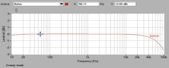 Poziom szumów jest umiarkowany (-85 dB), a dynamika wspina się na pułap aż 106 dB. Charakterystyka przenoszenia (rys.1) przy 100 kHz ma spadek 2,3 dB, a przy 10 Hz wynosi on -0,3 dB.