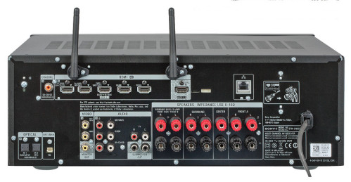 Podobnie jak inni producenci, również i Sony wyraźnie ogranicza liczbę gniazd. Złącza podzielono na kilka grup, a te na sporej powierzchni rozrzucono dość "swobodnie"; tu gniazda optyczne, tam współosiowe, jedno z wejść analogowych przyporządkowano do wyjść subwooferowych, inne przesunięto o kilka centymetrów na bok - ale luz jest w sumie wygodny.