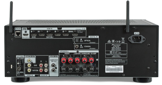 Każdy z dwóch systemów bezprzewodowych ma dedykowaną, zewnętrzną antenę, co jest konieczne przy metalowej obudowie amplitunera. Pioneer skondensował na niewielkiej powierzchni obudowy płytkę z układami cyfrowymi. Podobnie jak w wielu modelach poprzedniej generacji, dekodowanie sygnałów surround powierzono procesorowi DSP Texas Instruments.