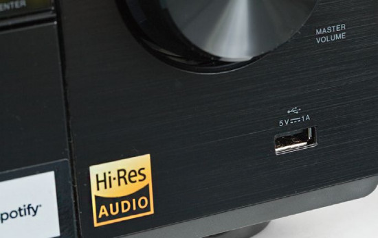 Na froncie jest wyjście słuchawkowe, wejście dla mikrofonu kalibracyjnego oraz pojedyncze złącze USB (typ-A) do obsługi sprzętu Apple oraz nośników pamięci. Amplituner jest nafaszerowany funkcjami odtwarzacza strumieniowego; na liście znalazły się standardy skompresowane (MP3, WMA, AAC), ale większą uwagę przyciągają oczywiście te bezstratne (opis w ramce obok).