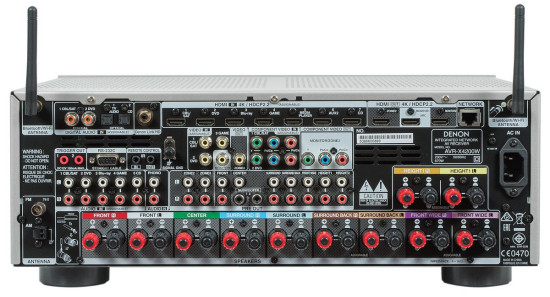 Denon dekoduje format 9.2, ma siedem końcówek mocy, ale zaciski głośnikowe pozwalają na podłączenie jedenastu kolumn. Nawet dobrze znany 5.1 ma wzmacniaczowo-głośnikowe wariacje, jak choćby zasilanie dodatkowej strefy lub bi-amping dla kolumn przednich.