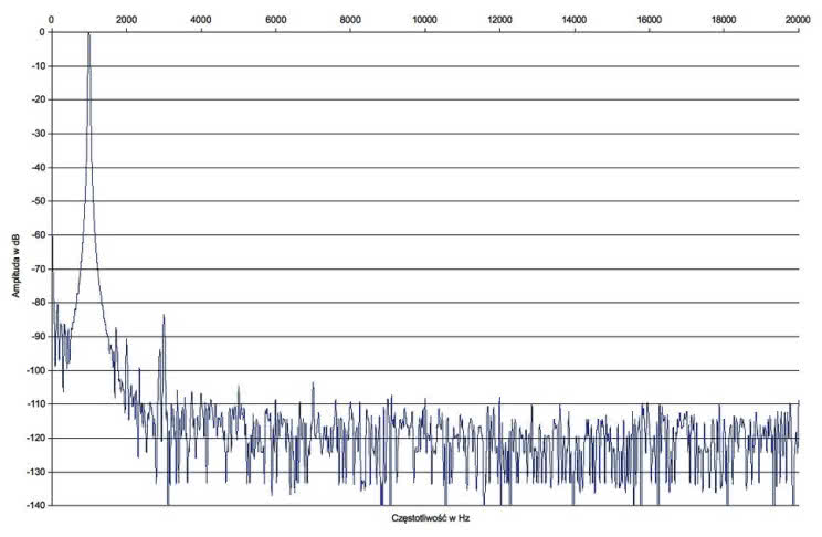 Charakterystyka przenoszenia (rys.1) jest świetna, bez spadku przy 10 Hz i tylko niewielkimi przy 100 kHz, odpowiednio -1 dB oraz -1,5 dB dla 8 i 4 omów. Jedyną dobrze widoczną harmoniczną jest trzecia (rys. 2), sięga do -83 dB, a pozostałe leżą poniżej -90 dB.