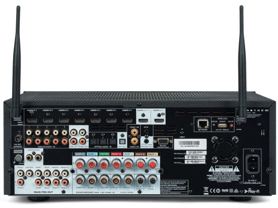 Oczywiście Anthem MRX-720 jest urządzeniem sieciowym, co sygnalizują zewnętrzne elementy – dwie duże anteny WLAN, wkręcane w złocone zaciski, gniazdo LAN i, rzecz jasna, reklamowe loga na przednim panelu. MRX- 720 melduje się standardowo do routera: bezprzewodowo a także przewodowo – poprzez LAN.