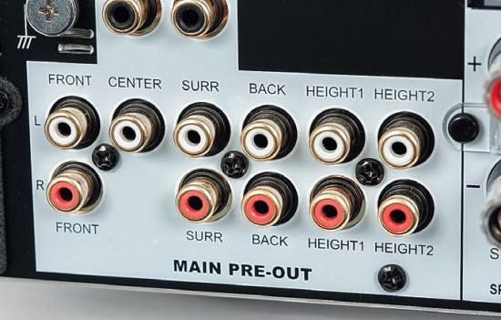 MRX-720 może dekodować w systemie 11.2; sam ma siedem końcówek mocy, ale pozwala podłączyć aż trzynaście (włączając dwa aktywne subwoofery) zewnętrznych końcówek mocy.
