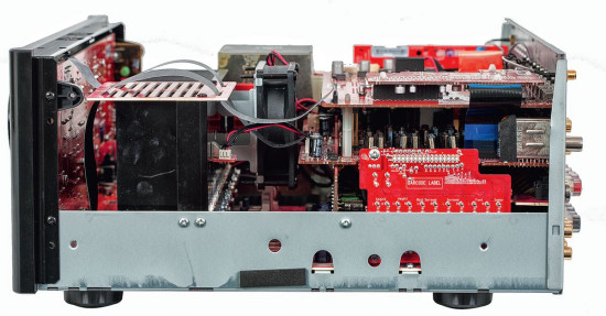 Elektronika A/V zajmuje wiele płytek drukowanych, główne są osadzone poziomo, ale są też mniejsze – pionowe. Taka aranżacja spowodowała prowadzenie niektórych sygnałów przewodami, jednak są to w większości dane sterujące.