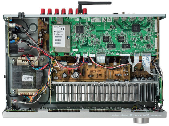 Zmiany konstrukcyjne w amplitunerach Yamahy opierają się w głównej mierze na modyfikacjach modułów cyfrowych. Rozmieszczenie wszystkich obwodów jest jednak podobne do tego, które producent wykorzystywał wcześniej. Przednią część obudowy wypełniają końcówki mocy wraz z umiarkowanym radiatorem, którego chłodzenie wspomagają perforacje zarówno dolnej, jak i górnej części obudowy.